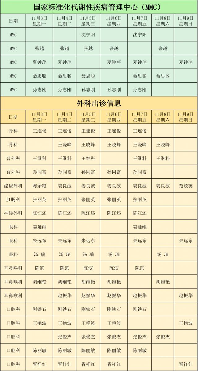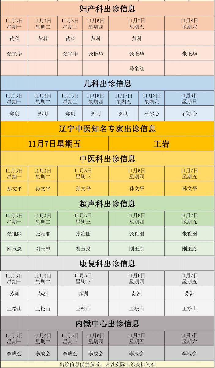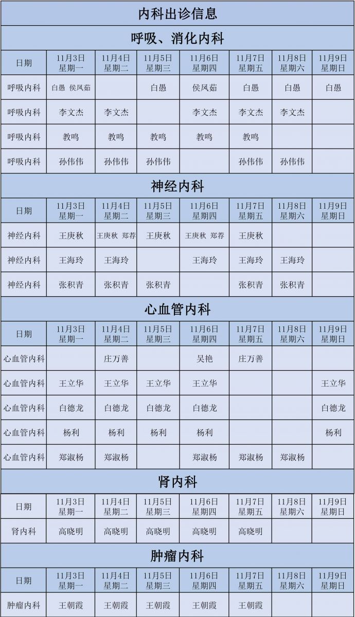 新城医院11月3日至11月9日门诊出诊信息