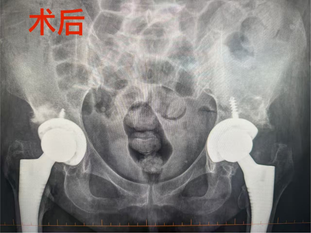 今年年初,老人的髋关节疼痛越发加剧,行走变得更加费力,于是告诉了外地子女,子女陪同老人来新城医院就诊检查,骨盆DR片提示:双侧髋关节退行性变,考虑双侧股骨头缺血性坏死。家属决定办理住院,为老人进行手术治疗。